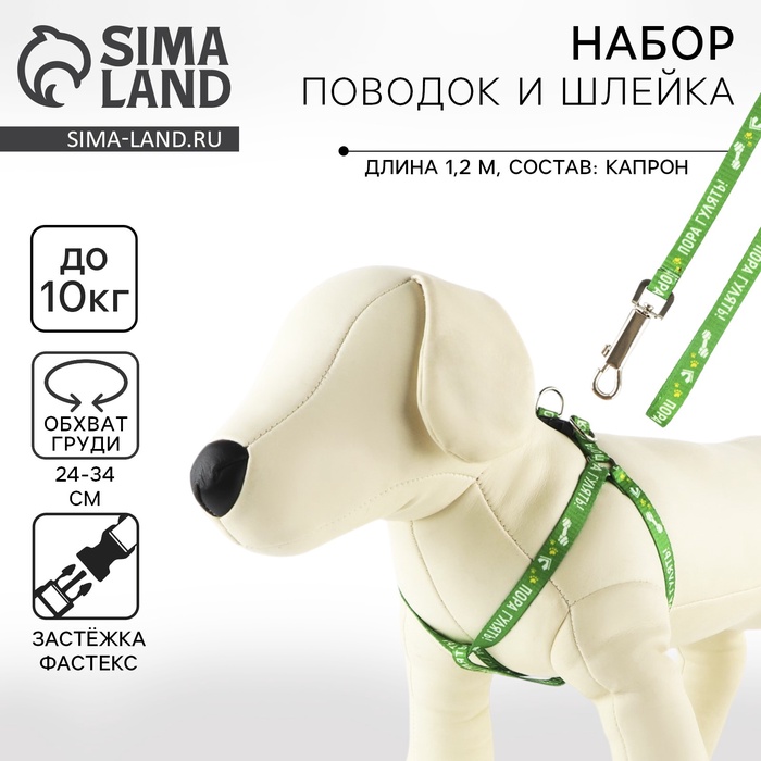 Комплект «Пора гулять», шлейка 24-34 см, поводок 120х1 см