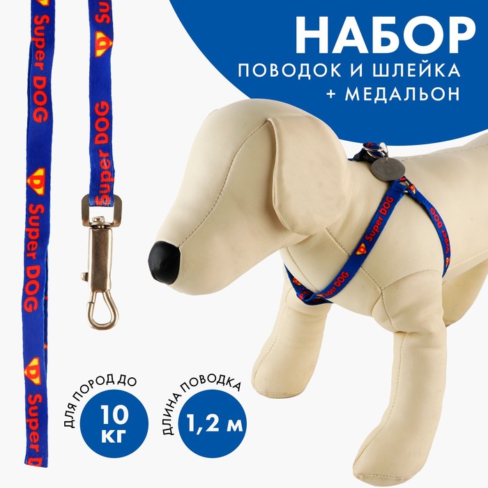 Комплект Super DOG, шлейка 26-39 см, поводок 120х1 см, медальон