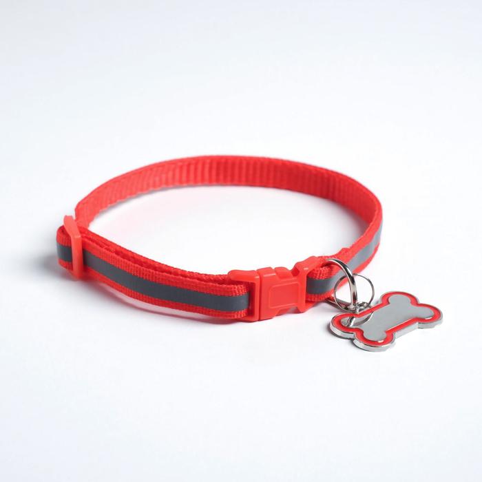 Ошейник светоотражающий с адресником, 30 х 1 см, капрон, цвет красный