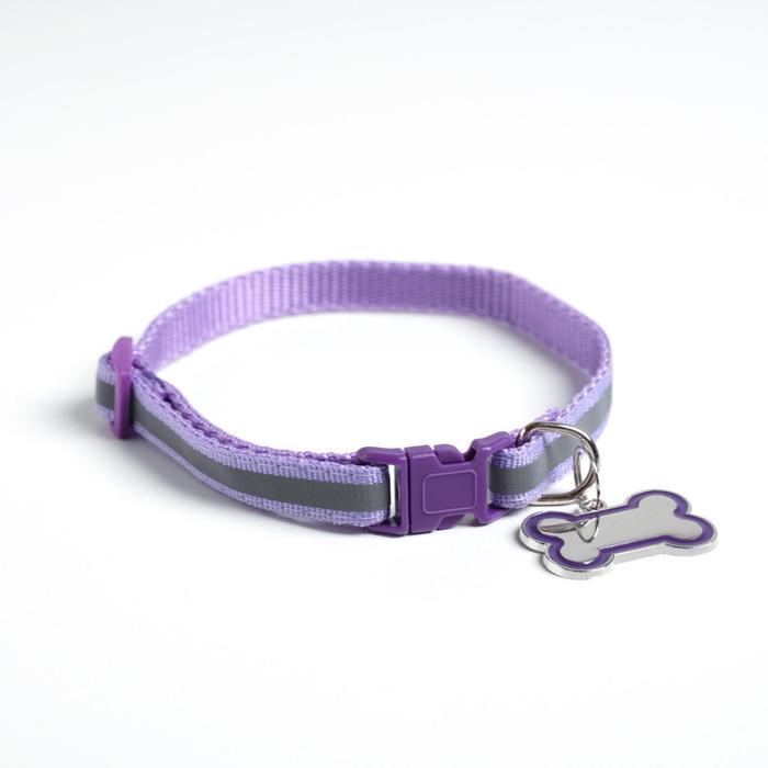 Ошейник светоотражающий с адресником, 30 х 1 см, капрон, цвет фиолетовый