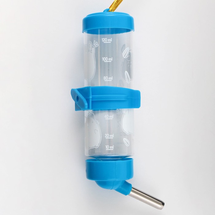 Поилка для грызунов "Хомячки" 125 мл, 12,5 Х 4,5 см, голубая
