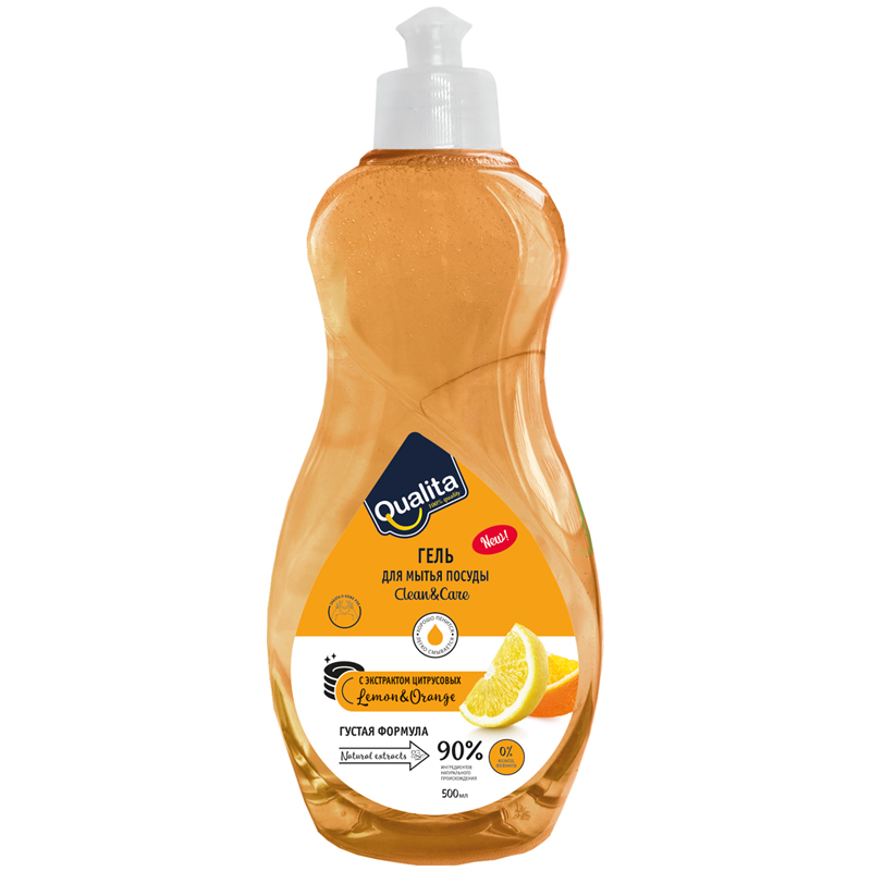 Средство для мытья посуды Qualita "Lemon & orange", пуш-пул, 500мл