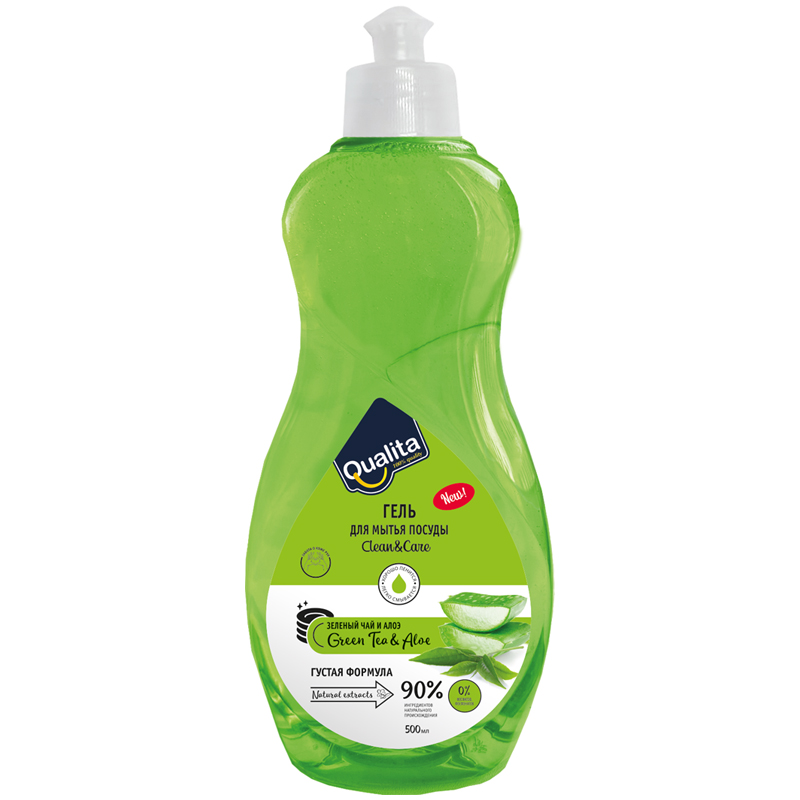 Средство для мытья посуды Qualita "Green tea & aloe", пуш-пул, 500мл
