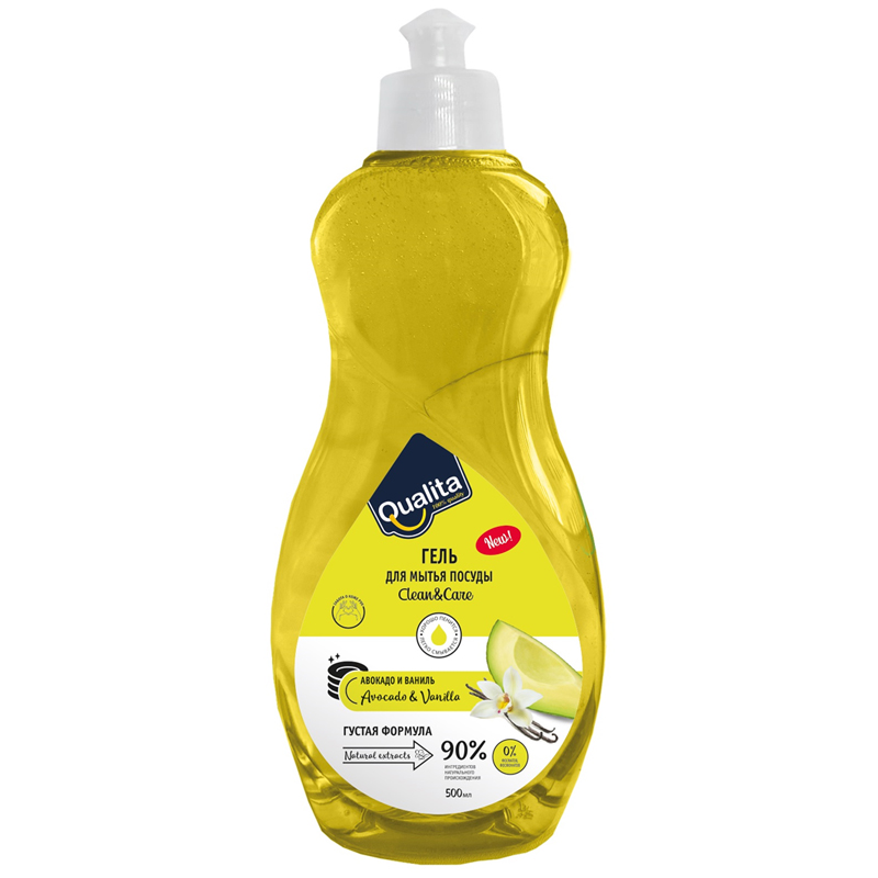 Средство для мытья посуды Qualita "Avoсado & vanilla", пуш-пул, 500мл