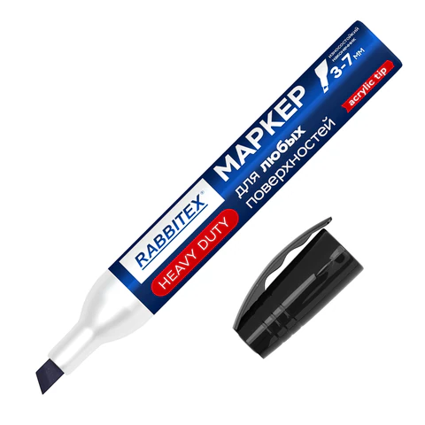 Маркер перманентный строительный для ЛЮБЫХ поверхностей металл, дерево, стекло, пластик, бетон HEAVY DUTY, ЧЕРНЫЙ 3-7мм, RABBITEX, 152659