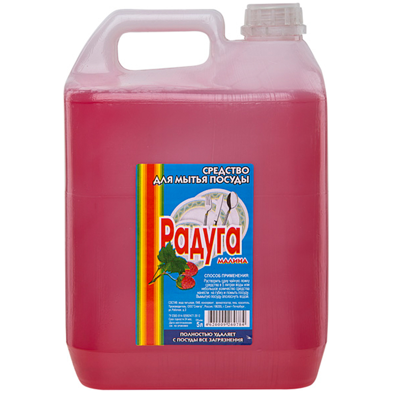 Средство для мытья посуды Радуга "Малина", канистра, 5л