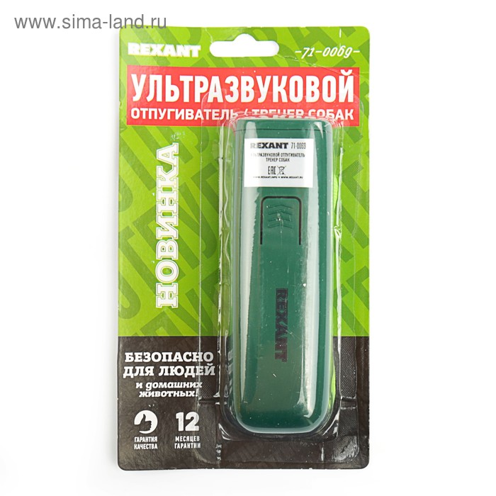 Отпугиватель собак Rexant 71-0069, ультразвуковой, 25 КГц, тренер собак, фонарик, 8 м