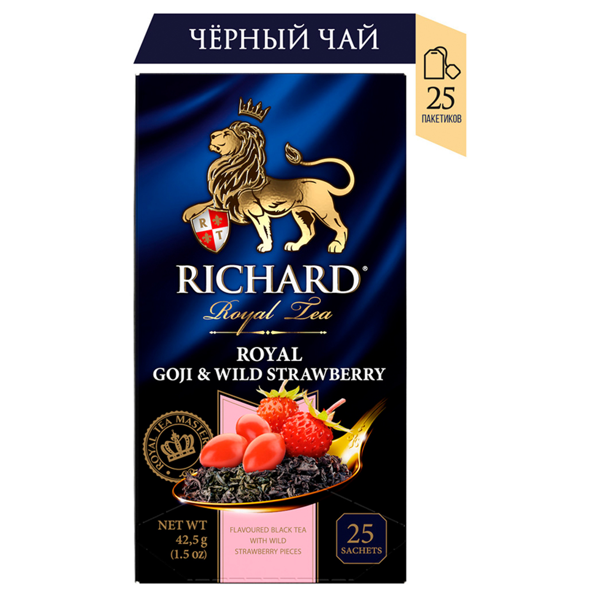 Чай Richard "Royal Goji & Wild Strawberry", черный с ароматом земляники и ягод годжи, 25 пакетиков по 2г