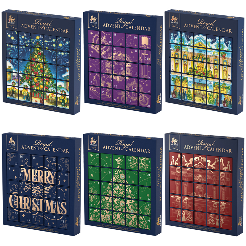 Подарочный набор чая Richard "Royal Advent Calendar", ассорти 5 видов, 25 пакетиков-пирамидок, 233г (Новый год)