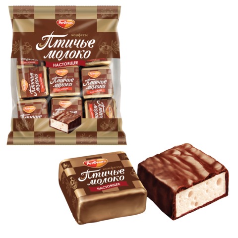Конфеты шоколадные РОТ ФРОНТ "Птичье молоко", суфле, сливочно-ванильные, 225 г, пакет, РФ09922