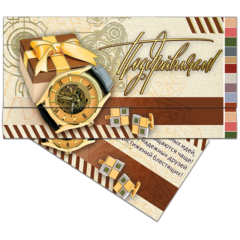 Конверт для денег Русский дизайн "Поздравляем! Мужские часы", 85*165мм