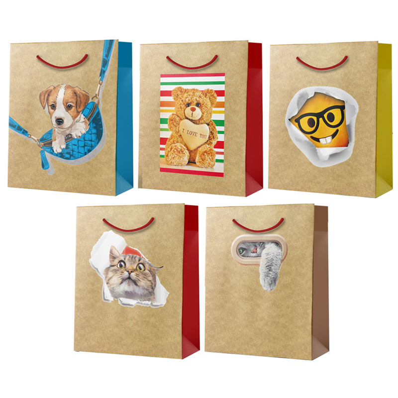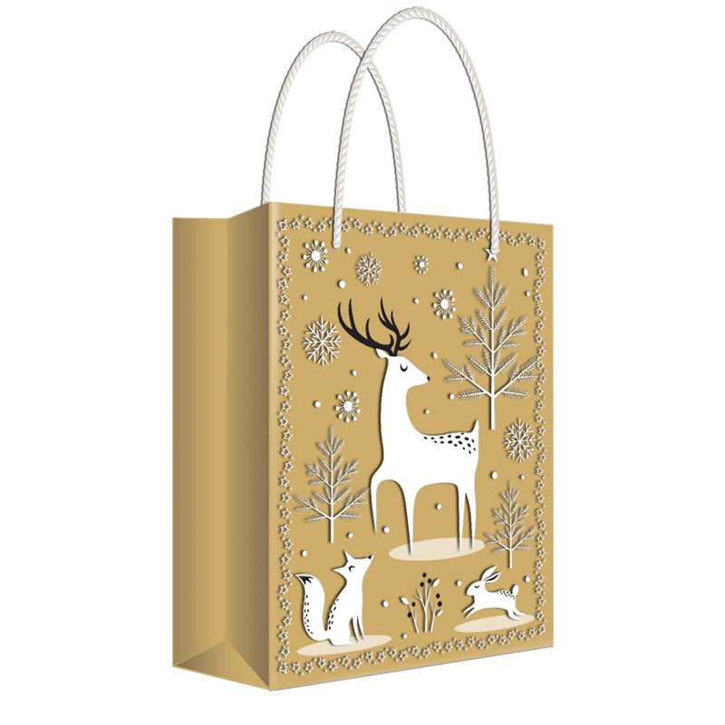 Пакет подарочный новогодний 22*31*10см Русский дизайн "Животные в лесу", крафт, пластизоль