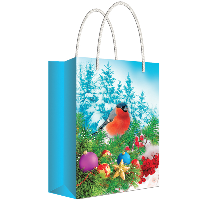 Пакет подарочный новогодний 11*13,5*6см Русский дизайн "Снегирь", ламинированный