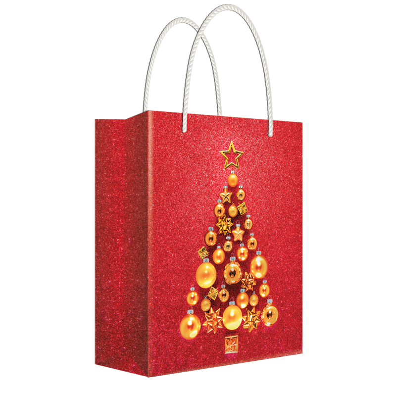 Пакет подарочный новогодний 11*13,5*6см Русский дизайн "Елка из игрушек ", ламинированный