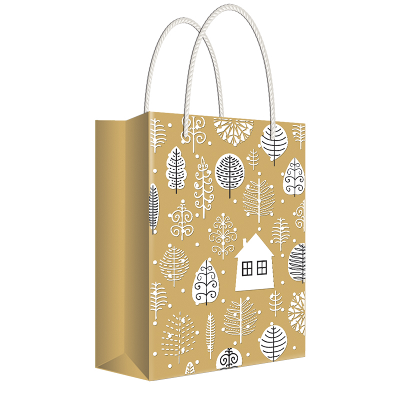 Пакет подарочный новогодний 22*31*10см Русский дизайн "Домик в лесу", крафт, пластизоль