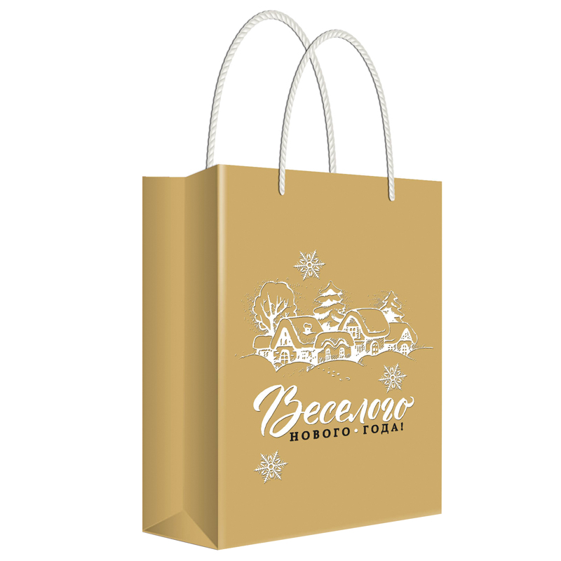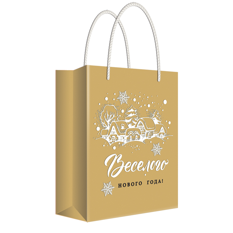 Пакет подарочный новогодний 18*22,7*10см Русский дизайн "Веселого Нового Года", крафт, пластизоль