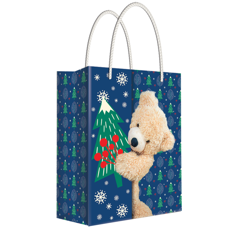 Пакет подарочный новогодний 22*31*10см Русский дизайн "Мишка с елочкой", ламинированный