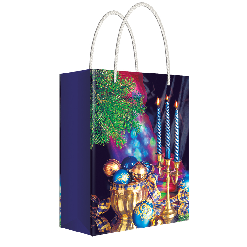 Пакет подарочный новогодний 11*13,5*6см Русский дизайн "Новогодние свечи ", ламинированный