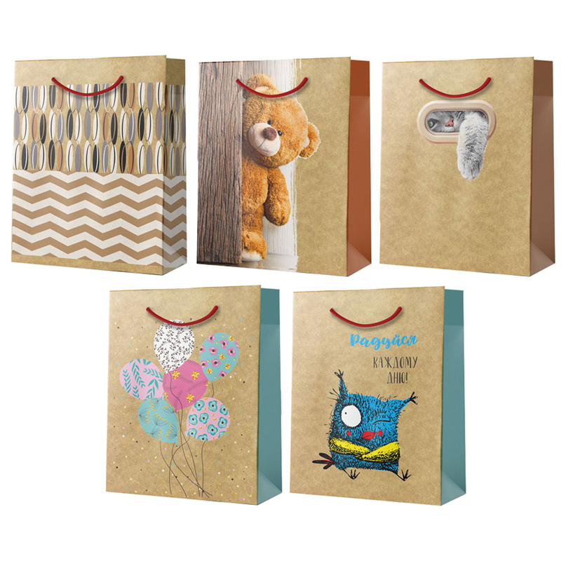 Пакет подарочный 18*23*10см Русский дизайн, микс 1, крафт