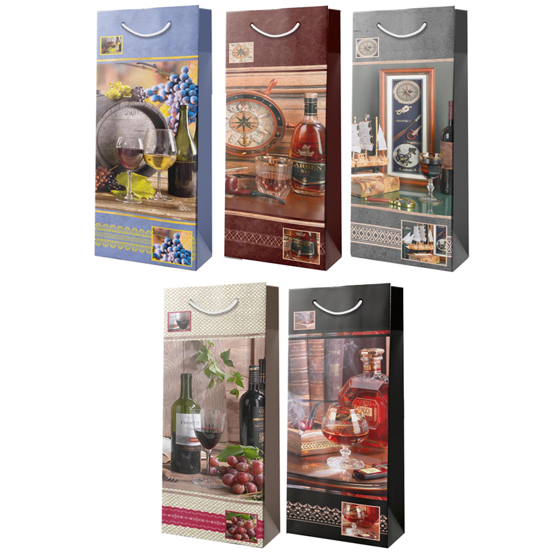 Пакет подарочный для бутылки 12*36*8см Русский дизайн, микс "Бутылка", ламинированный