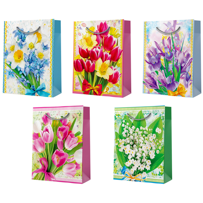 Пакет подарочный 26*33*14см Русский Дизайн, микс "Цветы", ламинированный