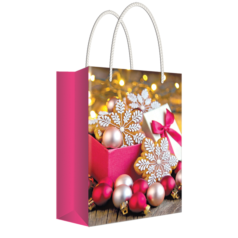 Пакет подарочный новогодний 18*22,7*10см Русский дизайн "Игрушечные снежинки", ламинированный