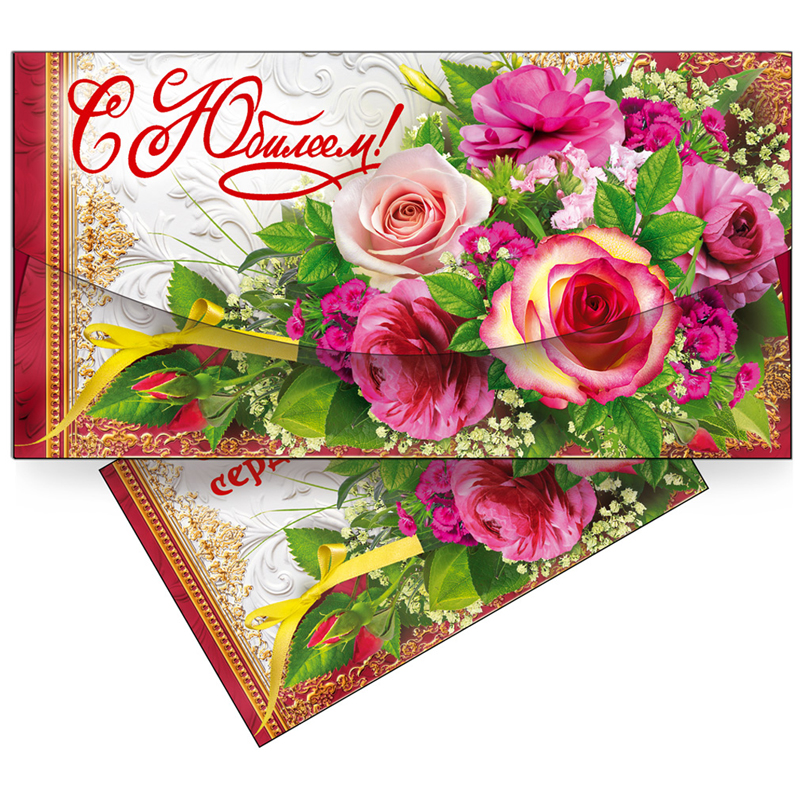 Конверт для денег Русский Дизайн "С Юбилеем! Цветы", 85*165мм, лакированный