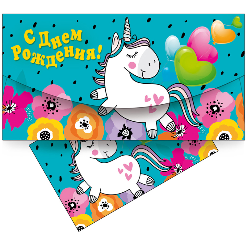 Конверт для денег Русский Дизайн "С днем рождения! Единорог", 85*165мм, лакированный