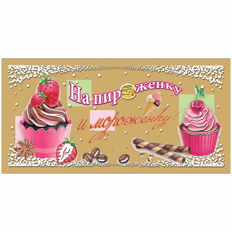 Конверт для денег Русский дизайн "На пироженку и мороженку!", 85*170мм, крафт, пластизоль