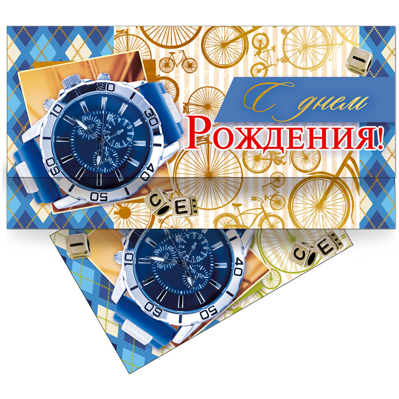 Конверт для денег Русский дизайн "Поздравляем! Мужские часы", 85*165мм