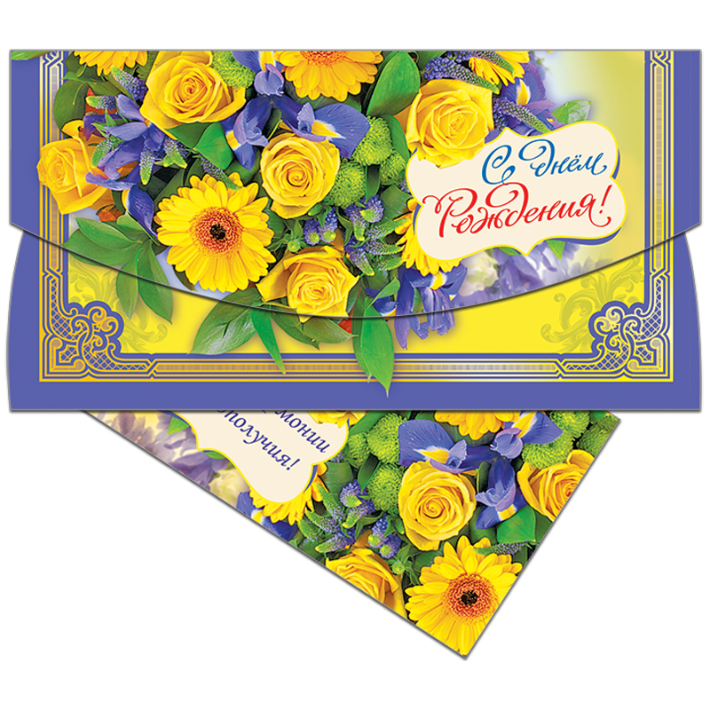 Конверт для денег Русский дизайн "С Днем Рождения! Желтый букет", 85*165мм