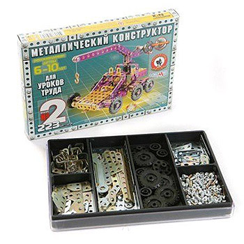 Конструктор " Русский стиль " №2 для уроков труда, 223 детали, металлический, отвертка, гаечный ключ, детали конструктора, с помощью инструкции с иллюстрациями ребенок сможет собрать 18 предложенных вариантов моделей