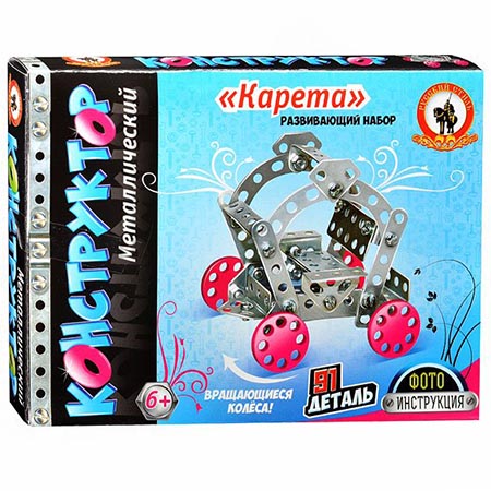 Конструктор металлический " Русский стиль " Карета, 91 детали, картонная упаковка, 170х26х128мм, 6+