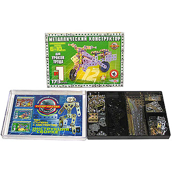 Конструктор " Русский стиль " №1 для уроков труда, 173 детали, металлический, отвертка, гаечный ключ, детали конструктора, с помощью инструкции с иллюстрациями ребенок сможет собрать 12 предложенных вариантов моделей