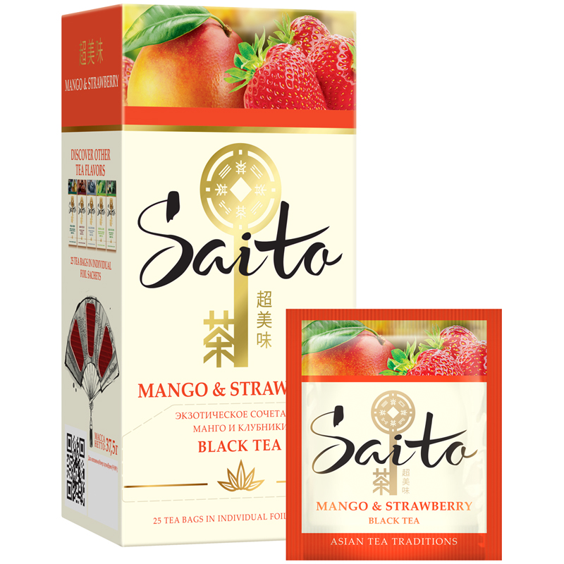 Чай Saito "Mango&strawberry", черный, 25 пакетиков-сашетов по 1,5г
