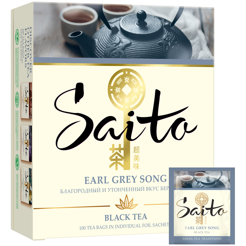 Чай Saito "Earl Grey Song", черный, 100 пакетиков-сашетов по 1,7г