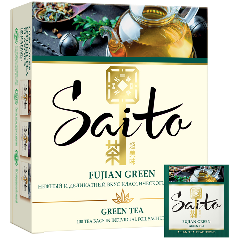 Чай Saito "Fujian Green", зеленый, 100 пакетиков-сашетов по 1,8г