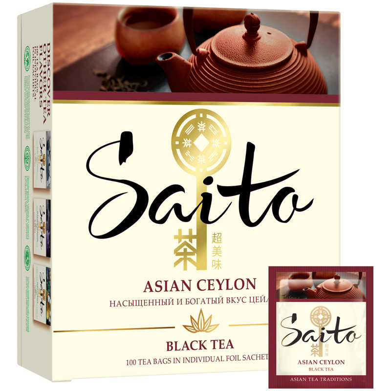Чай Saito "Asian Ceylon", черный, 100 пакетиков-сашетов по 1,7г