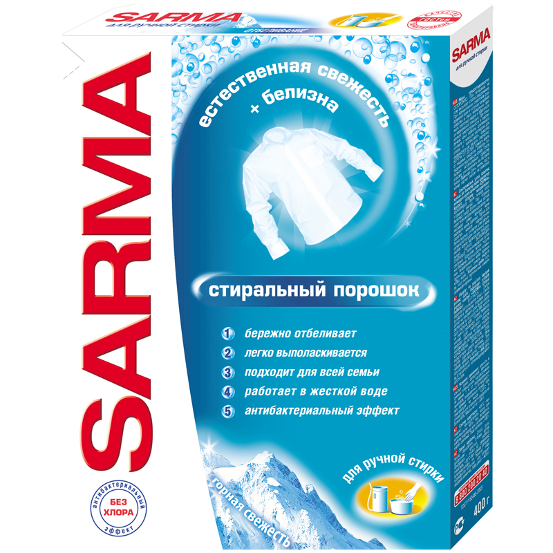 Порошок для ручной стирки Sarma "Горная свежесть", 400г