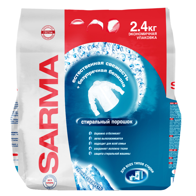 Порошок для машинной стирки Sarma "Горная свежесть", 2,4кг