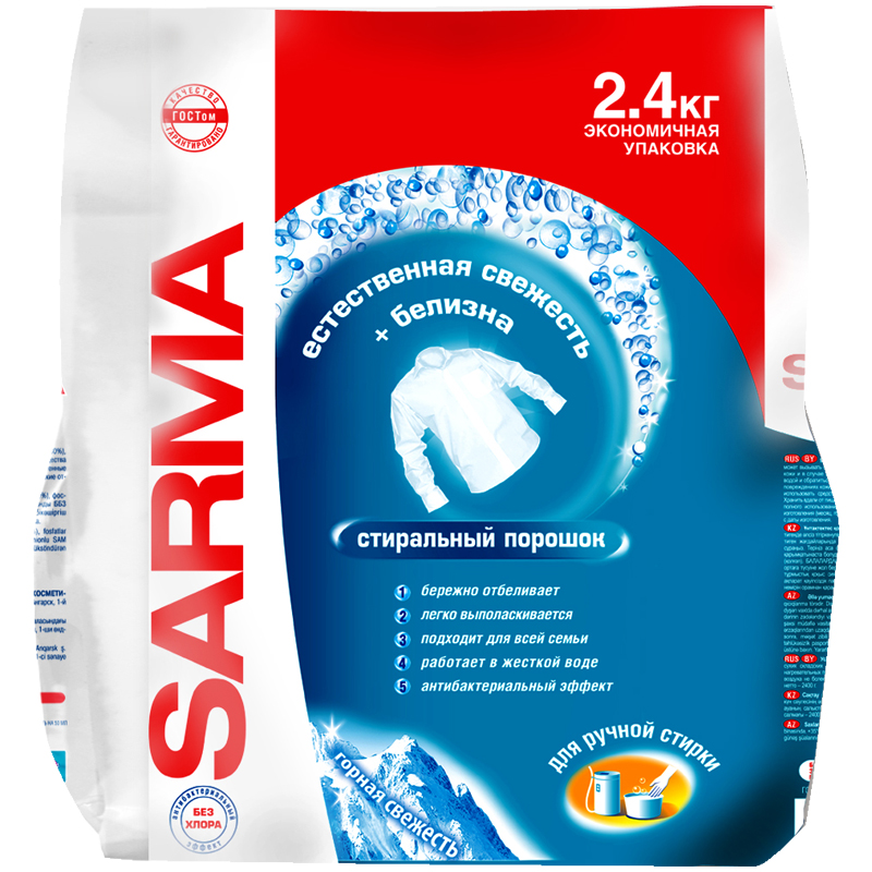 Порошок для ручной стирки Sarma "Горная свежесть", 2,4кг