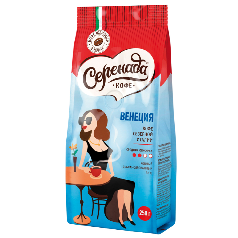 Кофе в зернах Серенада "Венеция", мягкая упаковка, 250г