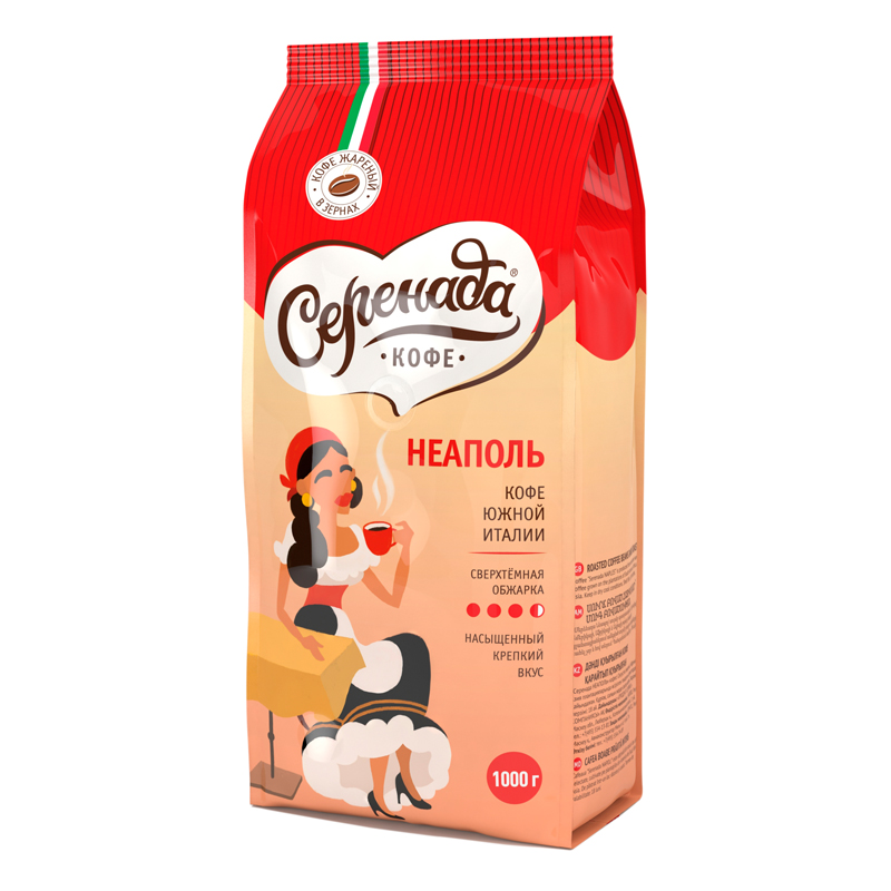 Кофе в зернах Серенада "Неаполь", мягкая упаковка, 1кг