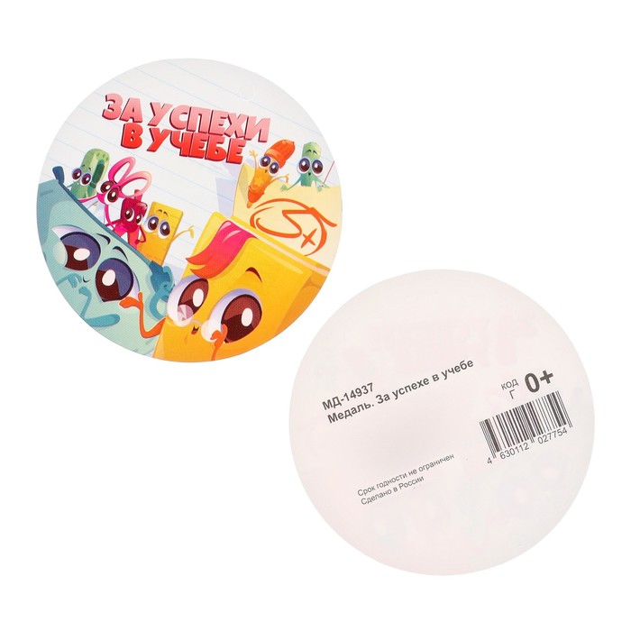 Медаль "За успехи в учебе!" канцтовары, 8х8 см