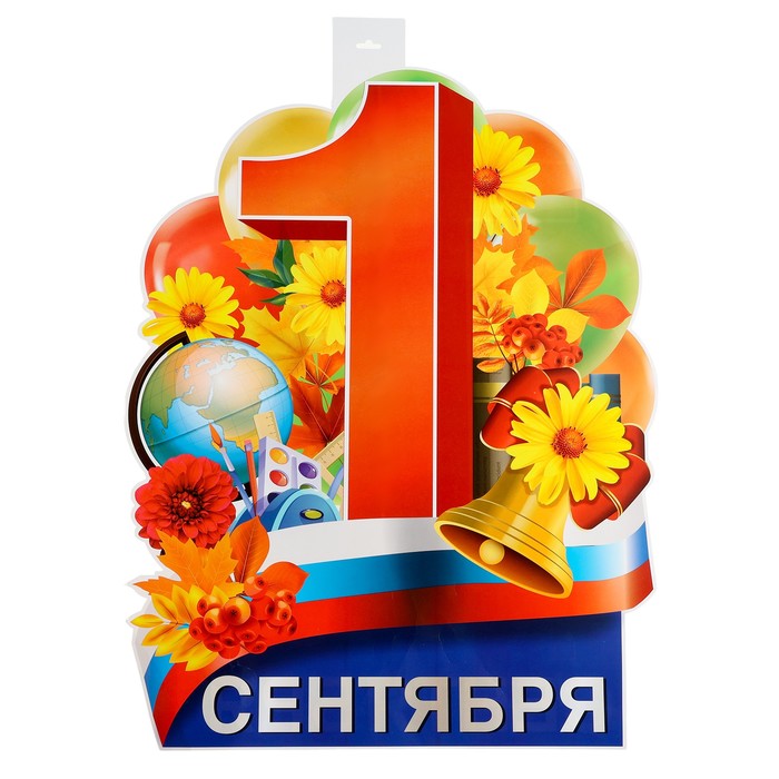 Плакат вырубной "1 Сентября" триколор, цветы, 60 х 40 см