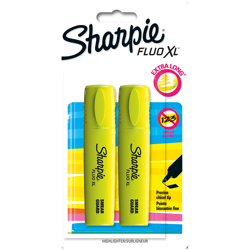 Набор текстовыделителей Sharpie "Fluo XL" 2шт., желтые, скошенные, 0,75-5мм, блистер