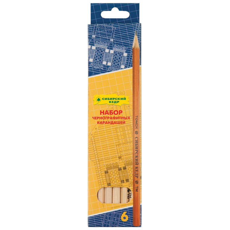 Набор карандашей ч/г Сибирский кедр, 6шт., 2Т-2М, заточен., картон. упак., европодвес