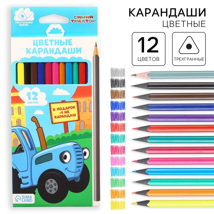 Цветные карандаши, 12 цветов, трехгранные, Синий трактор