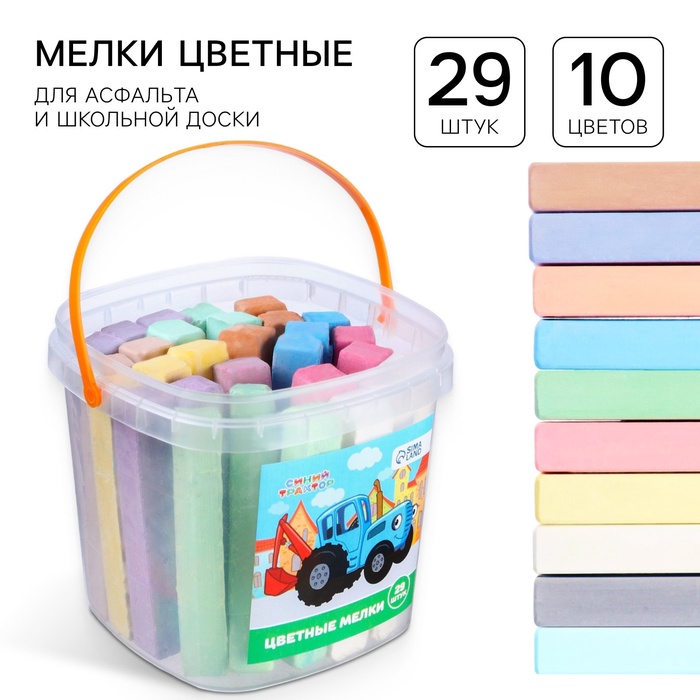 Мелки цветные, Синий трактор, 10 цветов, 29 штук