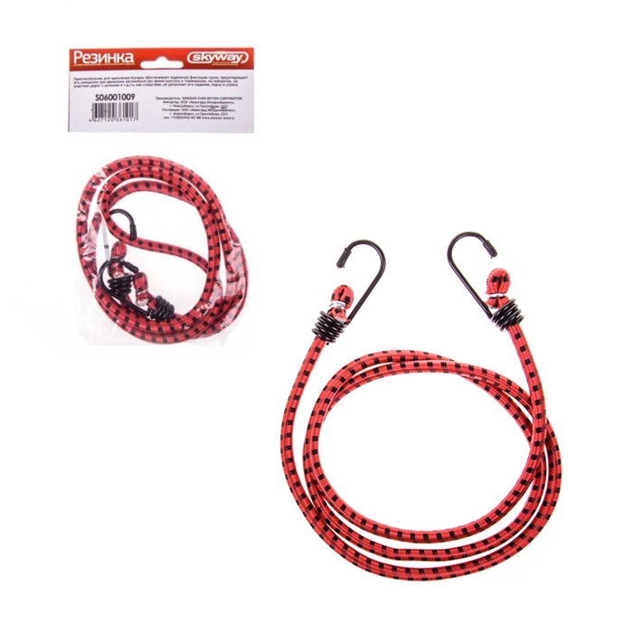 Резинка для крепления багажа Skyway, 100 см, d8 мм, металлические крючки, набор 2 шт S06001007